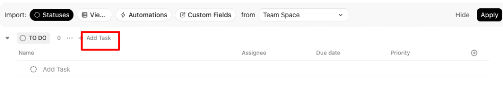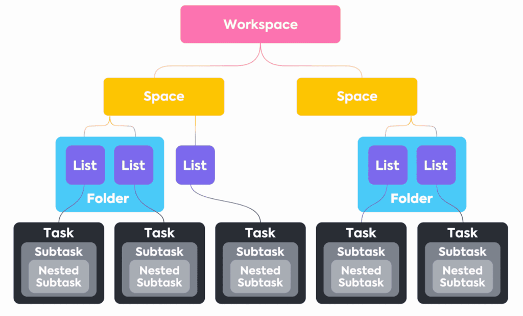 Start Simple with the Hierarchy | Don’t try to set up everything at once. Begin with Workspaces → Spaces → Folders → Lists → Tasks, and expand only when your workflow demands it. |